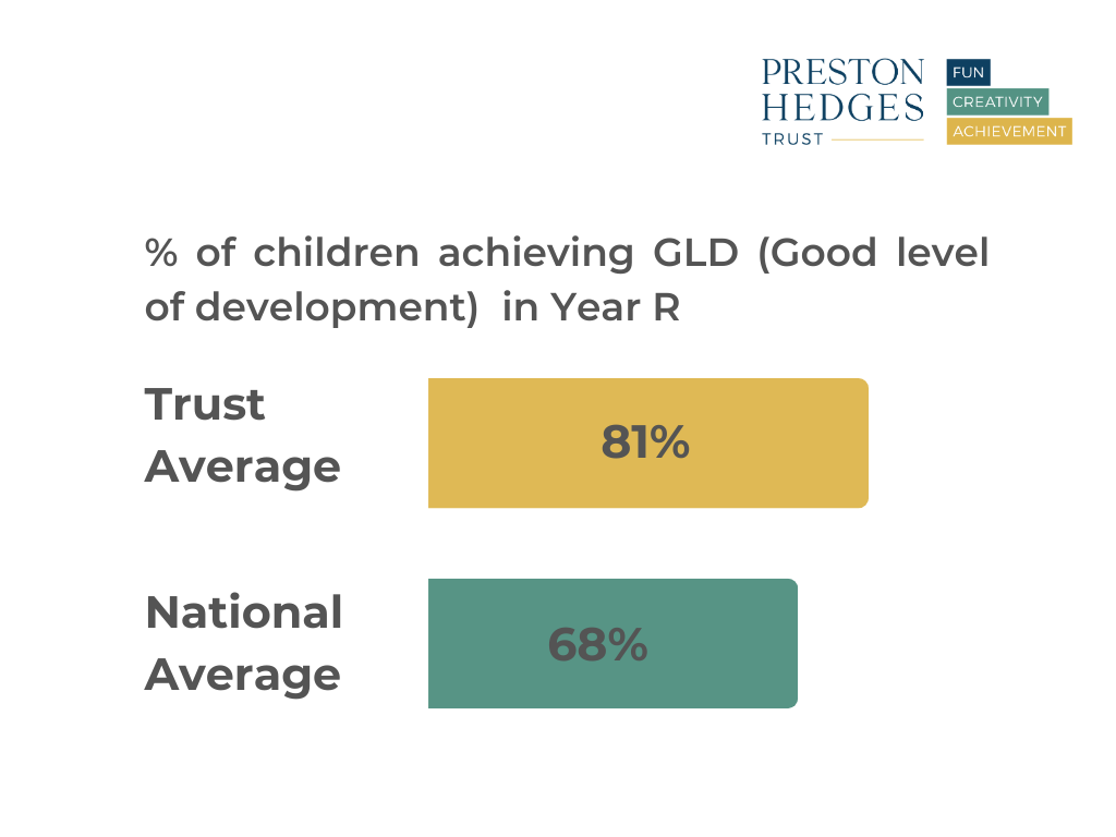 We are delighted therefore that recent figures released by Government show that the percentage of children reaching a Good Level of Development (GLD) at the end of Reception is far exceeding national targets.