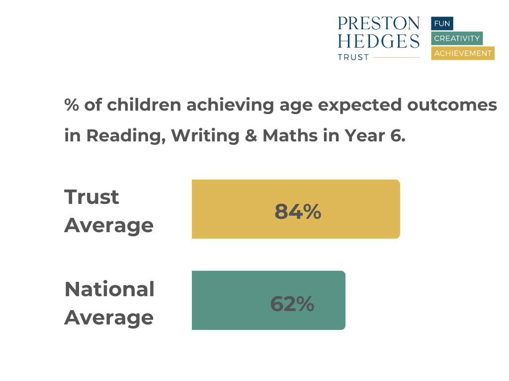 84% of children across our Trust’s schools achieved the Year 6 standard in 2025, compared with a national average of 62%. Our pupils outperformed the next best Trust in the county by six percentage points, demonstrating the high-quality education being delivered by our schools in your constituency.